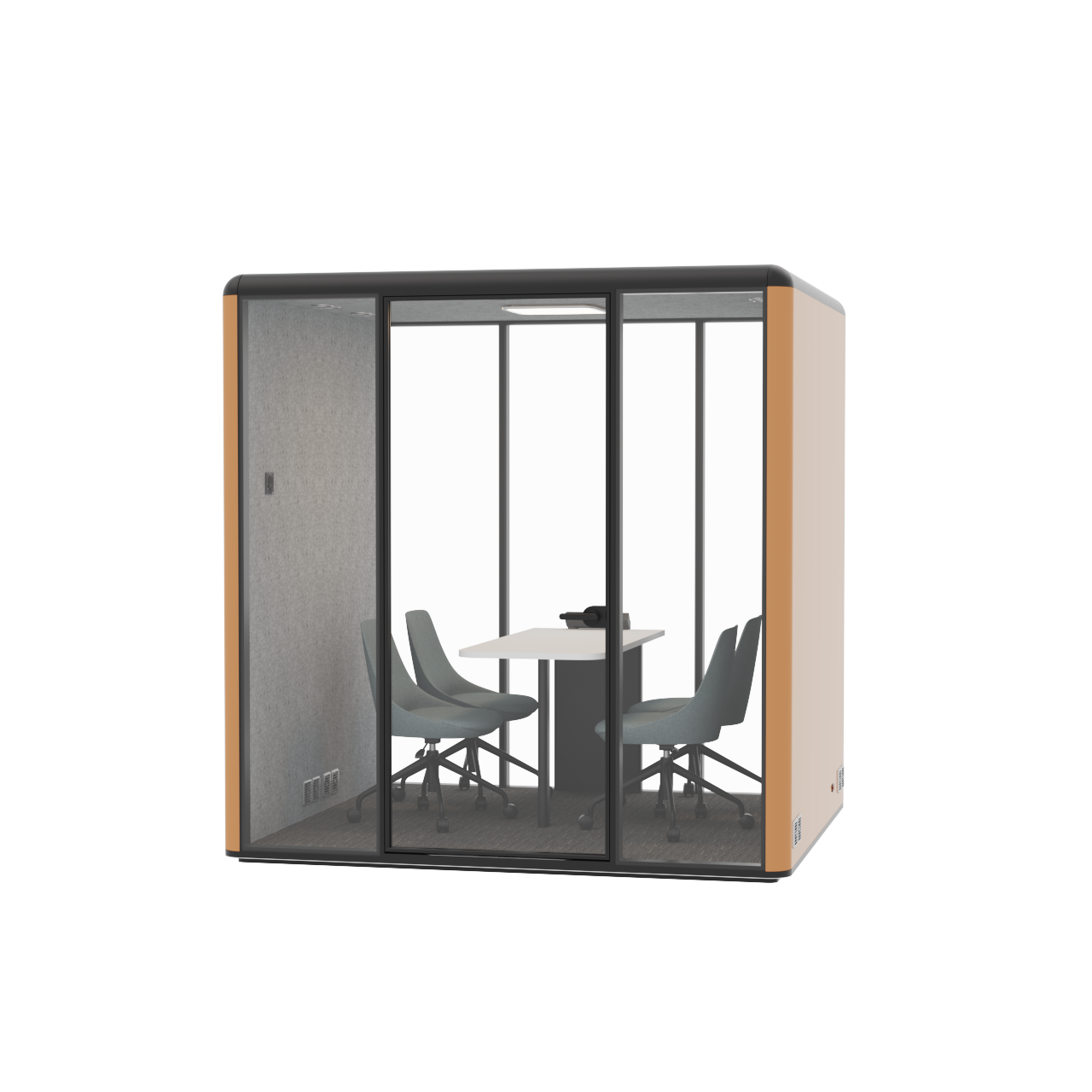 The Musepod features a spacious interior designed to comfortably accommodate up to four people, making it ideal for both casual conversations and productive discussions. Whether you’re brainstorming ideas or having a relaxed meeting, this generous space fosters collaboration and creativity.